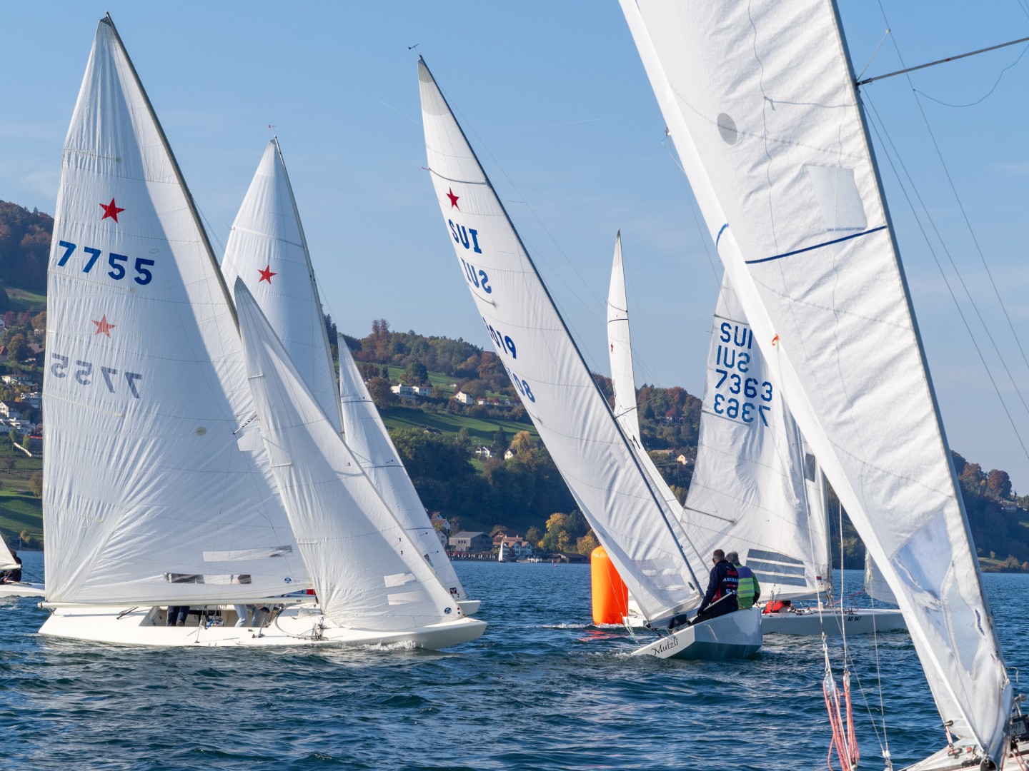 Die nächsten beiden Wettfahrten konnten fertig gesegelt werden. Der Wind blies weiterhin wechselhaft, verabschiedete sich jedoch nie vollständig, sodass alle Teilnehmer recht ähnliche Bedingungen vorfanden. Das Regattakomitee unter der Leitung von Thomas Huber hat diesen Samstagnachmittag optimal genutzt und damit das Bestmögliche – zwei gewertete Wettfahrten – herausgeholt. Herzlichen Dank.