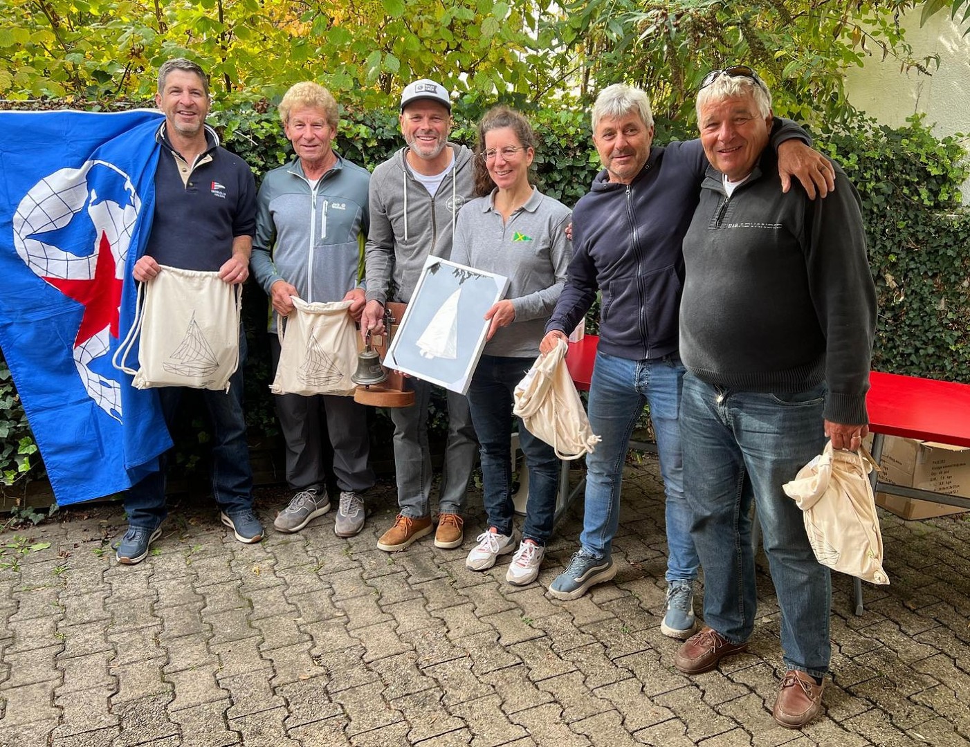 Das Rangverlesen wurde ungefähr eine Stunde später draussen unter dem Sonnenschirm immer noch bei völliger Windstille durchgeführt. Weil am Sonntag nicht gesegelt werden konnte, bildete das Zwischenergebnis von Samstagabend nun das kaum überraschende Endergebnis. Mit einer Ausnahme: Der Schreibende wurde sich gewahr, dass seine